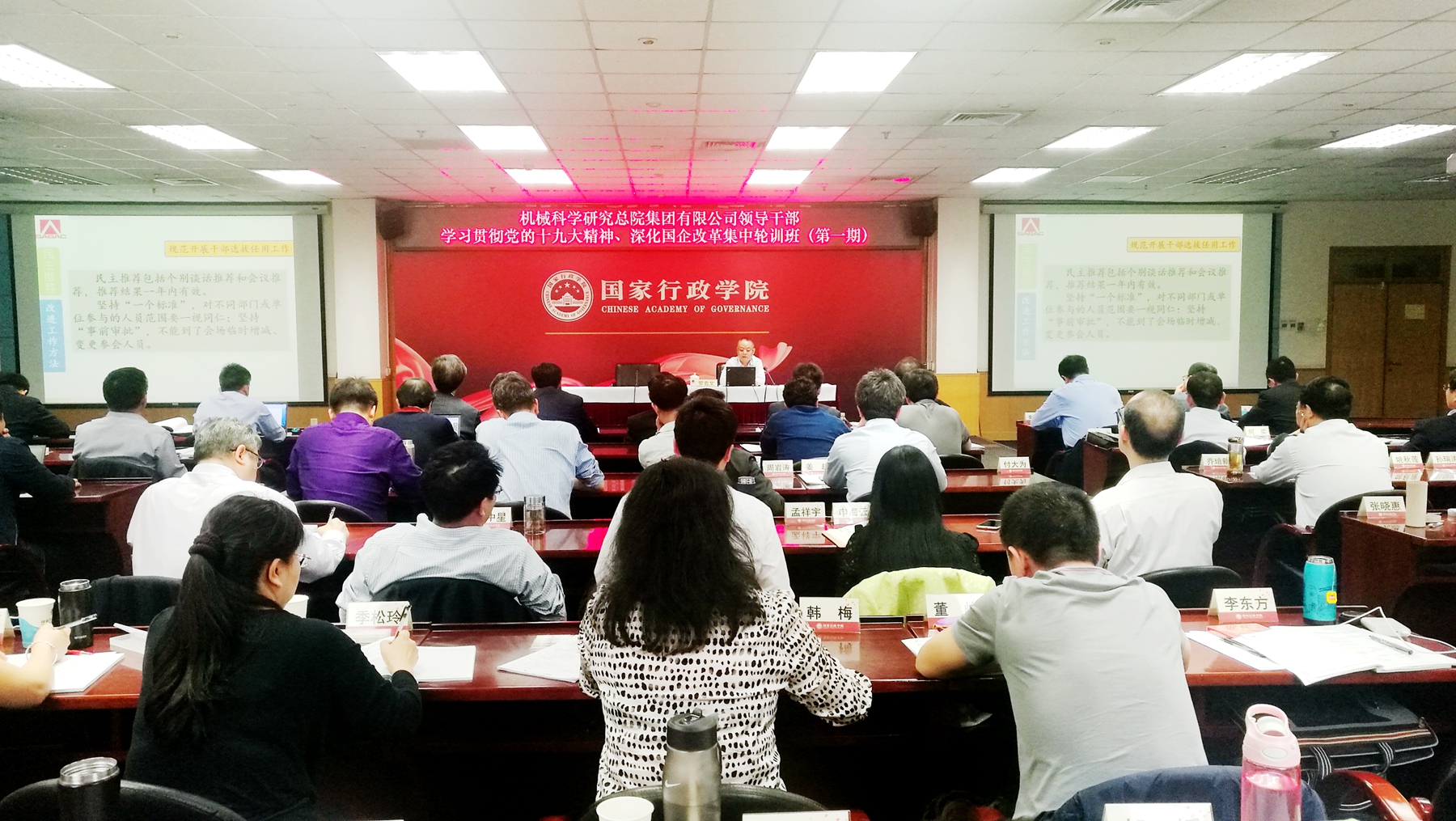 4月16日至4月20日,机械总院集团领导干部学习贯彻习近平新时代中国特色社会主义思想和党的十九大精神、深化国企改革集中轮训班(第一期)在国家行政学院成功举办。机械总院集团党委书记、董事长、总经理王德成,各单位董事长、党委书记、总经理,集团总部各职能部门主要负责人以及各单位党群、人事、纪检部门主要负责人参加了培训。