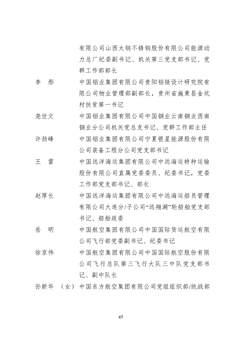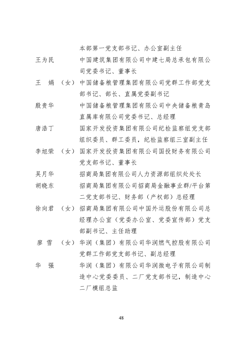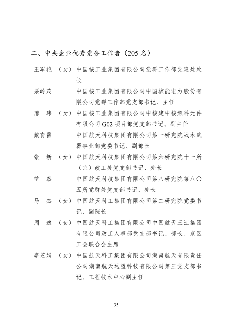 为表彰先进、弘扬正气,激励各级党组织和广大共产党员在把握新发展阶段、贯彻新发展理念、构建新发展格局中奋发有为、建功立业,国资委党委决定,授予邢继等338名共产党员“中央企业优秀共产党员”称号(含追授2名),授予王军艳等205名党务工作者“中央企业优秀党务工作者”称号,授予中国核工业集团有限公司福建福清核电有限公司党委等448个基层党组织“中央企业先进基层党组织”称号。这次表彰的优秀个人和先进集体是中央企业各条战线上的杰出代表,他们的先进事迹和崇高精神充分展示了新时代共产党人的先进性和纯洁性,生动诠释了中央企业共产党员的初心和使命,彰显了国有企业先进精神的无穷伟力。